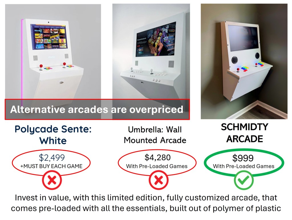 SCHMIDTY ACADES offers every game you can imagine, all pre-loaded and ready to play, right out of the box. That means – all the classics – no compromises. Why settle for 1 arcade with 1 game, or a few closely related games.